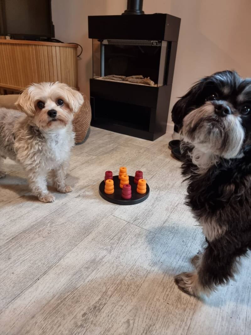 Er staat een mand met allerlei speelgoed in. Laat je hond er maar gerust mee spelen en als er iets stuk gaat, dan is dat geen probleem. Regelmatig vul ik de bak aan met nieuw speelgoed.